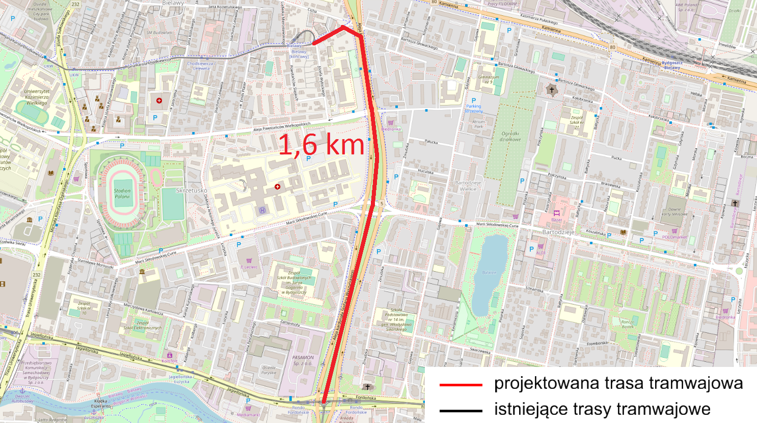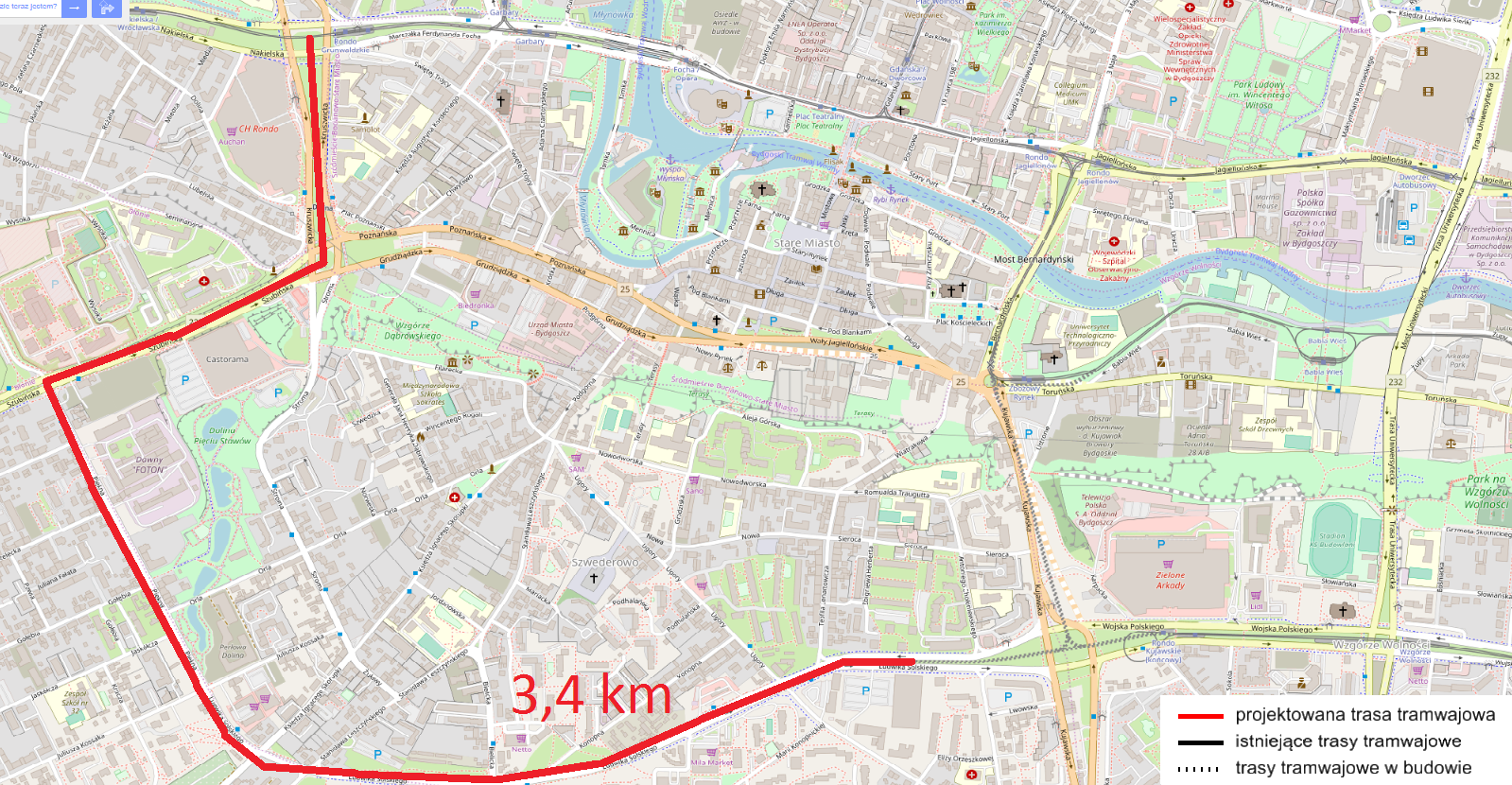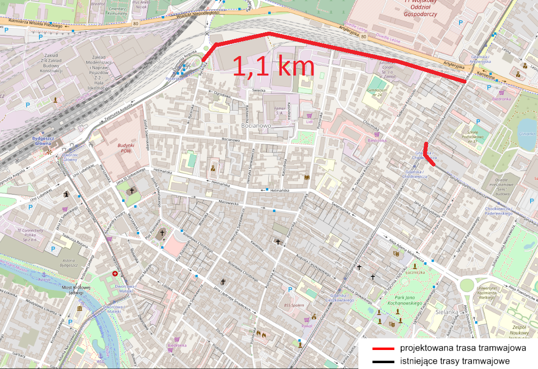 Wykonawca będzie musiał też opracować też koncepcje wydłużenia torów od pętli przy ulicy Chodkiewicza do ulicy Wyszyńskiego, tory biegłyby w kierunku południowym aż do Ronda Fordońskiego.