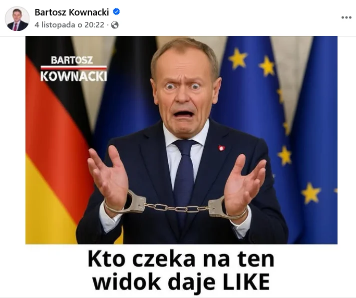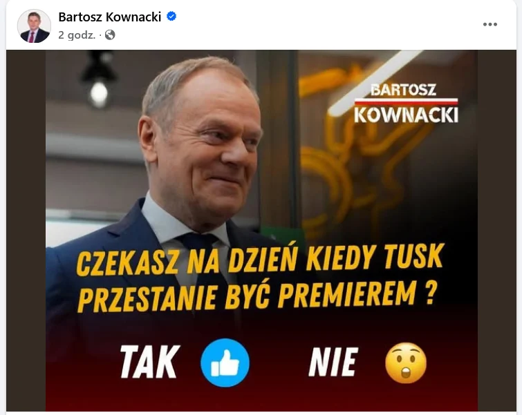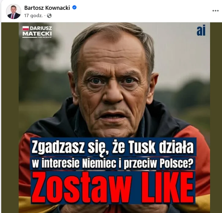 Budować zasięgi pomagają interakcje – na Facebook-u będą to np. polubienia albo komentarze. Część polityków PiS-u, w tym bydgoski poseł Bartosz Kownacki regularnie wrzuca posty typu ,,Czekasz na dzień kiedy Tusk zostanie być premierem?”. Jeżeli tak, mamy zostawić polubienie. ,,Zgadzasz się, że Tusk działa w interesie Niemiec? Zostaw like”. Do tego celu wykorzystywana jest też grafika wygenerowana przez AI.