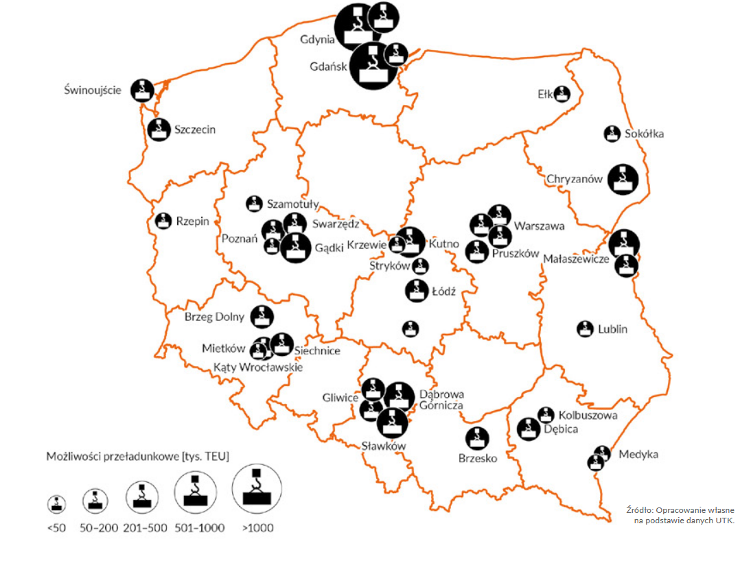 Polska mimo to zalicza się do państw UE, gdzie dostępność terminali jest jedna z najmniejszych, bo wynosi około 0,8 na 10 tys. km2, gdy w Holandii jest to 12, a w Niemczech 5.