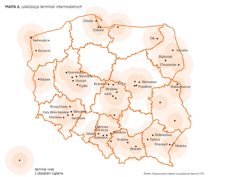 Warto spojrzeć jeszcze na inną mapę, która pokazuje obszary ciążenia istniejących terminali (warto spojrzeć jakie jest natężenie w sąsiedniej wielkopolsce):
