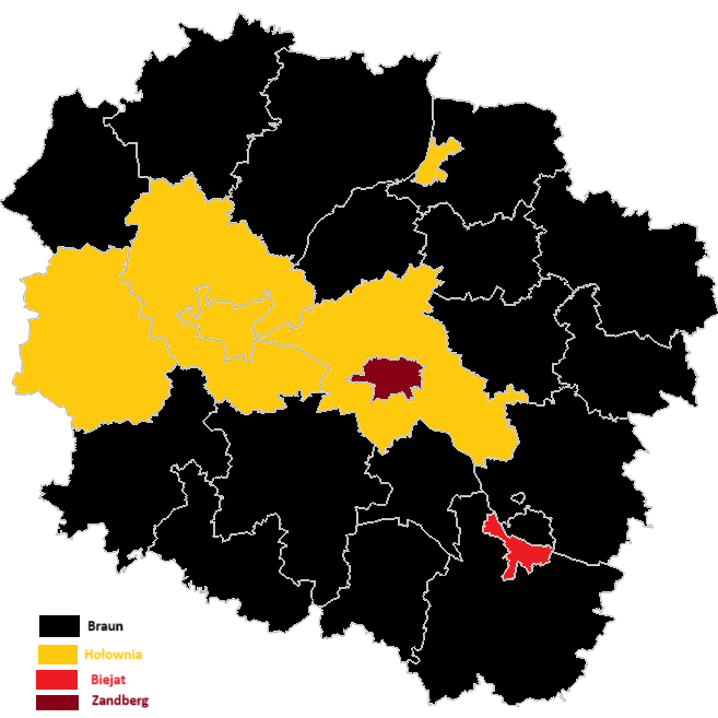 Po wschodniej podział jest już bardziej rozłożony, bo Nawrocki wygrał w powiatach: aleksandrowskim, brodnickim, grudziądzkim, lipnowskim, golubsko-dobrzyńskim, radziejowskim, rypińskim i włocławskim. Trzaskowski wygrał właściwie tylko w Toruniu, w Grudziądzu, we Włocławku oraz w powiatach toruńskim i chełmińskim. Z uwagi jednak na większe zaludnienie w miastach również w tym okręgu lepiej wypadł Trzaskowski.