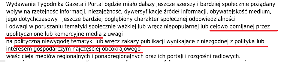 O przyznaniu grantu na działalność społeczną zdecydowała 19 osobowa komisja konkursowa, z czego jednak aż 11 osób to pracownicy Urzędu Marszałkowskiego, co może budzić wątpliwości czy nie dochodzi do naruszenia wspomnianego artykułu EKPC, która w świetle orzecznictwa Europejskiego Trybunału Praw Człowieka mówi, że media powinny być niezależne od władzy. W tym wypadku jest korelacja finansowa w związku z przyznaną dotacją przez Urząd Marszałkowski.