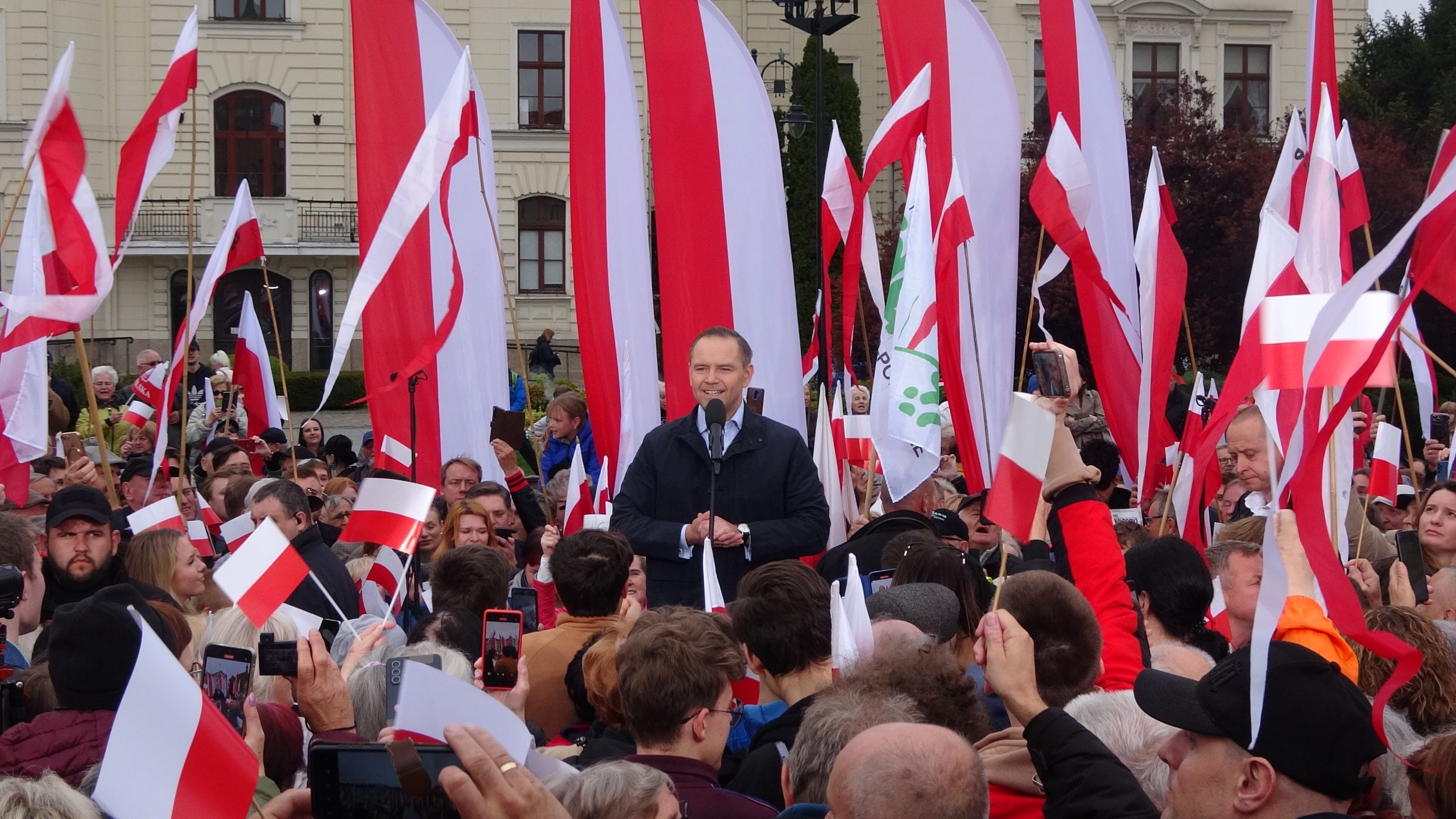 Zebrany tłum oprócz skandowania okrzyków ,,Zwyciężymy” oraz imienia swojego kandydata, uderzał wprost też w jego kontrkandydata – Polska cała bez Rafała – do czego się przyłączył też Karol Nawrocki.