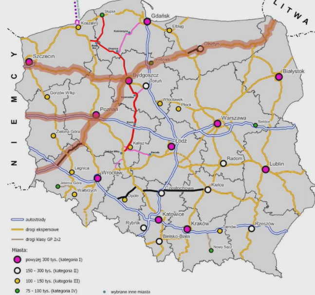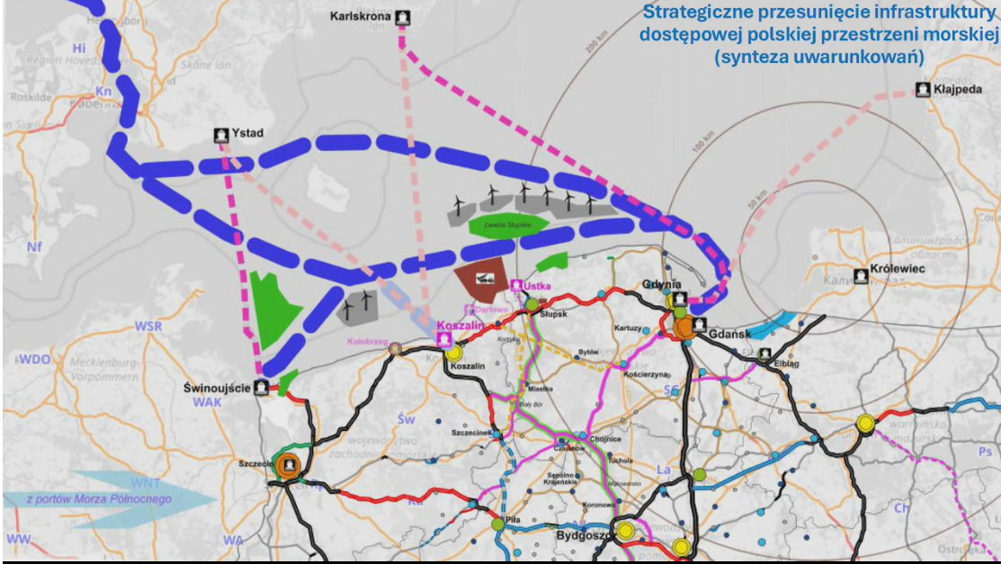 W innym slajdzie Kubiak wskazywał, że Bydgoszcz w przypadku wojskowego zastosowania to kluczowy węzeł drogowy, bowiem zakładając potencjalny konflikt w krajach bałtyckich, to siły amerykańskie do Europy wkraczać będą przez porty w Amsterdamie i Hamburgu, a najkrótsza droga na Litwę prowadzić będzie przez Poznań A2 i Szczecin, a dalej przez Bydgoszcz S5 i planowaną S10 i od Nowych Marz planowanym przedłużeniem S5.