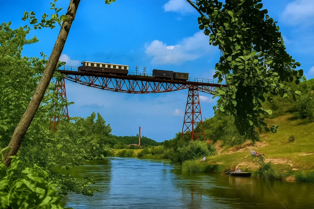 Zdjęcie z Koronowa – przedstawiające most kolejki wąskotorowej w Okolu.