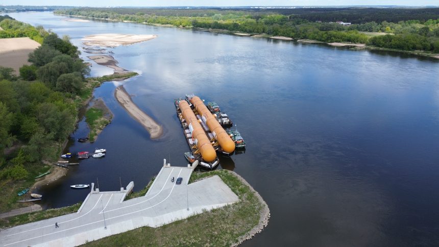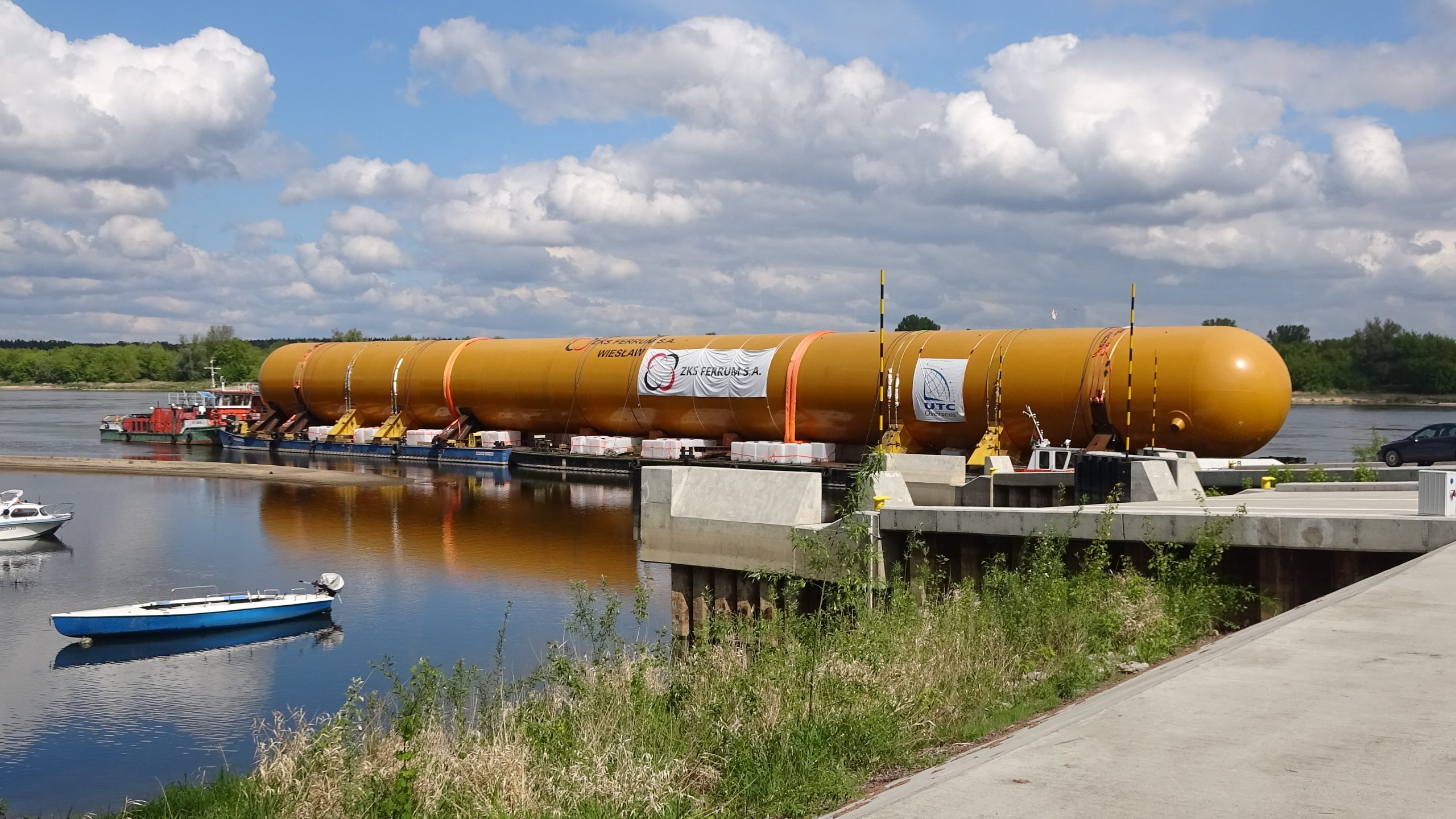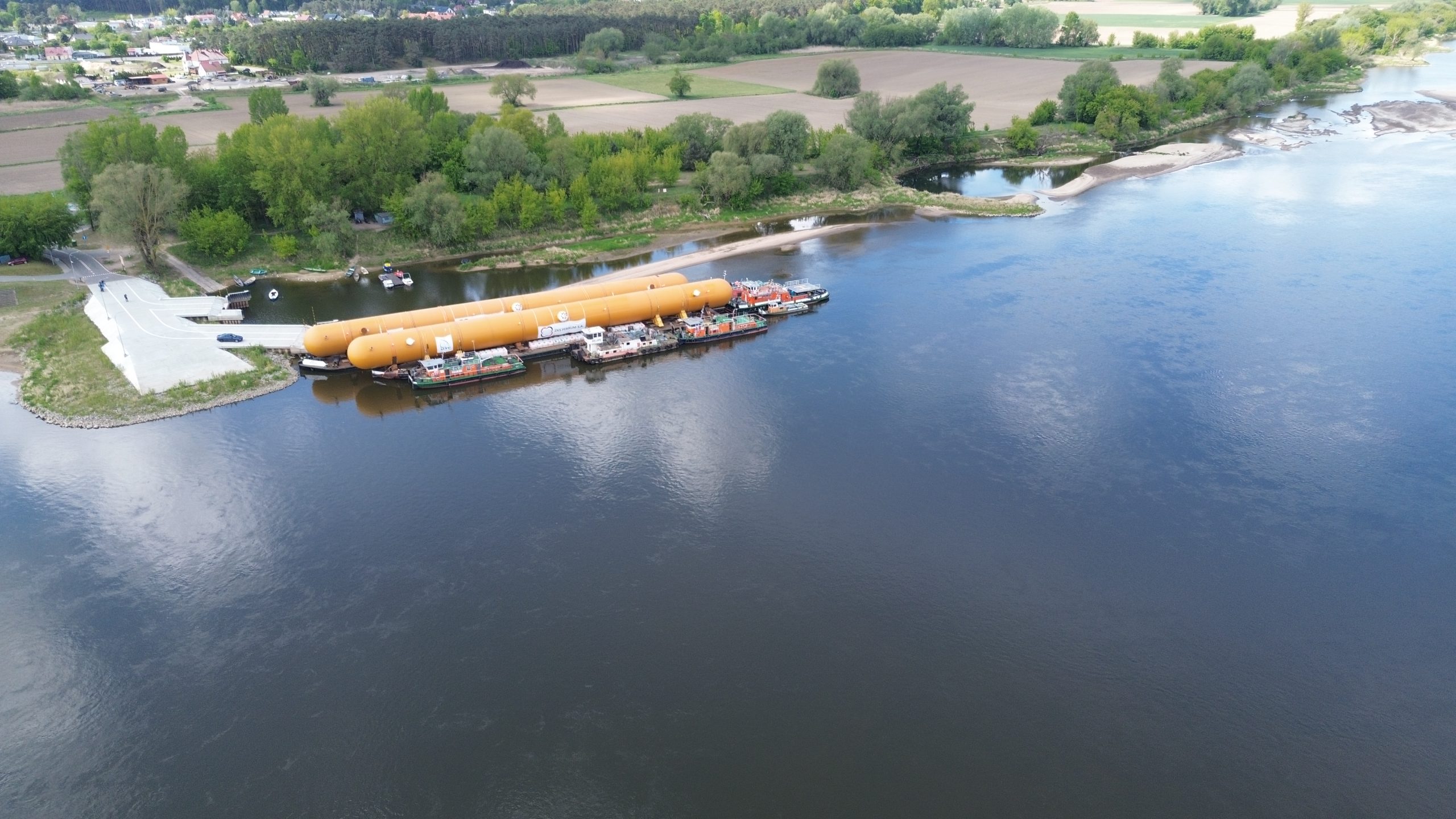 1 kwietnia z portu Gdyni wypłynęły Wisłą dwa ogromne zbiorniki zamówione przez Orlen do Płocka. Długość każdego to 80 metrów i waga 430 ton – trasa do pokonania to około 400 km. Zbliżamy się do połowy maja, a zbiorniki stoją w dość specyficznym miejscu, bo na przystani sławnego promu między Solcem Kujawskim i Czarnowem, który nie funkcjonuje z tego samego powodu – niskiego poziomu Wisły.
