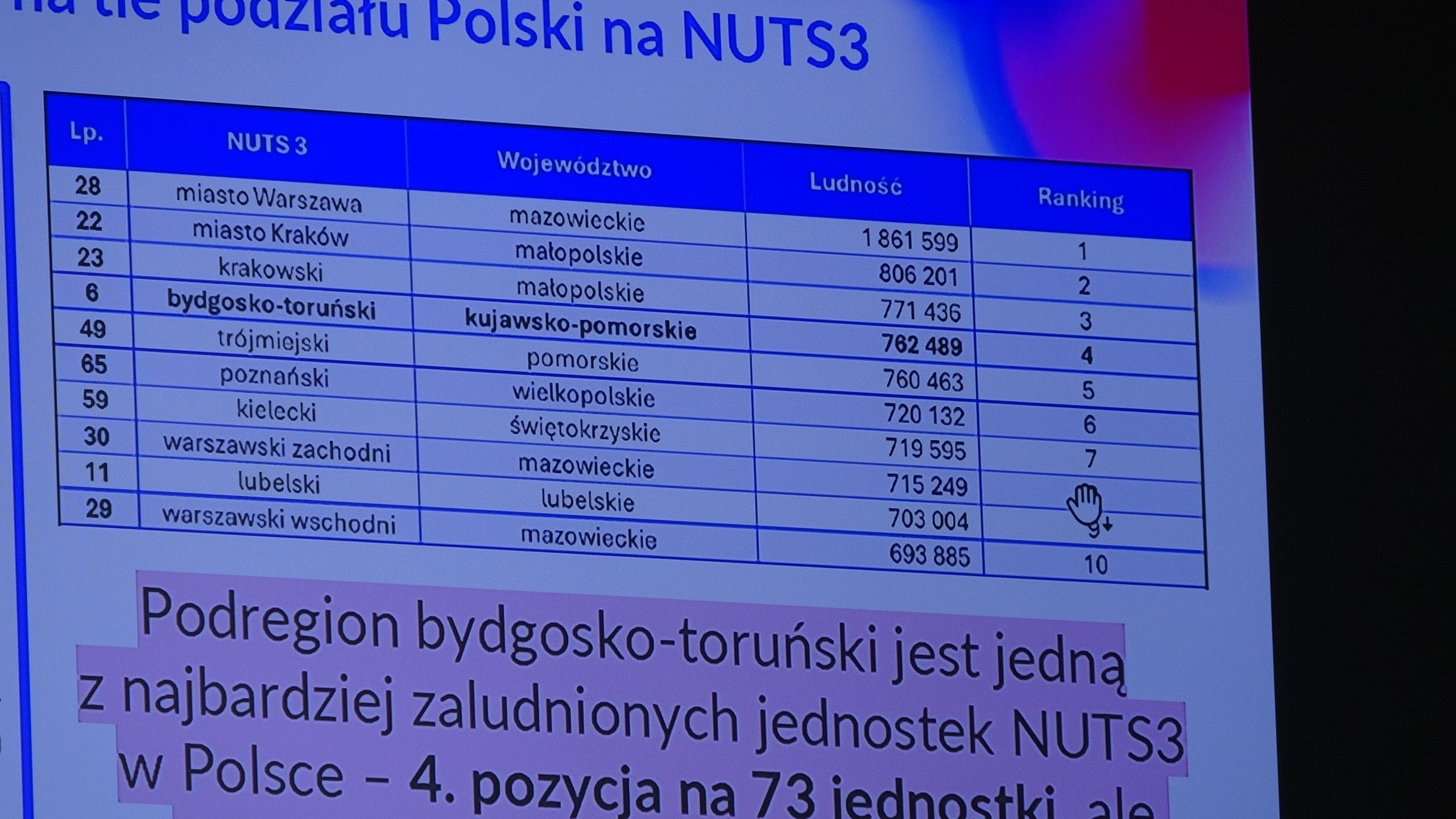 Główna argumentacja marszałka to fakt, że obecnie podregion bydgosko-toruński ma ponad 700 tys. mieszkańców, dlatego jest 4 największym w Polsce, po warszawskim i dwóch krakowskich (Kraków osobno i obszar pod Krakowem osobno). Marszałek wiele razy użył słowa ,,ranking”, chociaż celem nomenklatury na poziomie NUTS3 jest raczej porównywanie podobnych sobie podmiotów. W polskich uwarunkowaniach prawnych na poziomie NUTS3 jednostki mogą liczyć od 150 do 800 tys. mieszkańców. Pozostałe cztery w kujawsko-pomorskim (grudziądzki, świecki, inowrocławski i włocławski) mają po około 300 tys. mieszkańców, zatem NUTS3 bydgosko-toruński jest przy nich dwa razy większy.