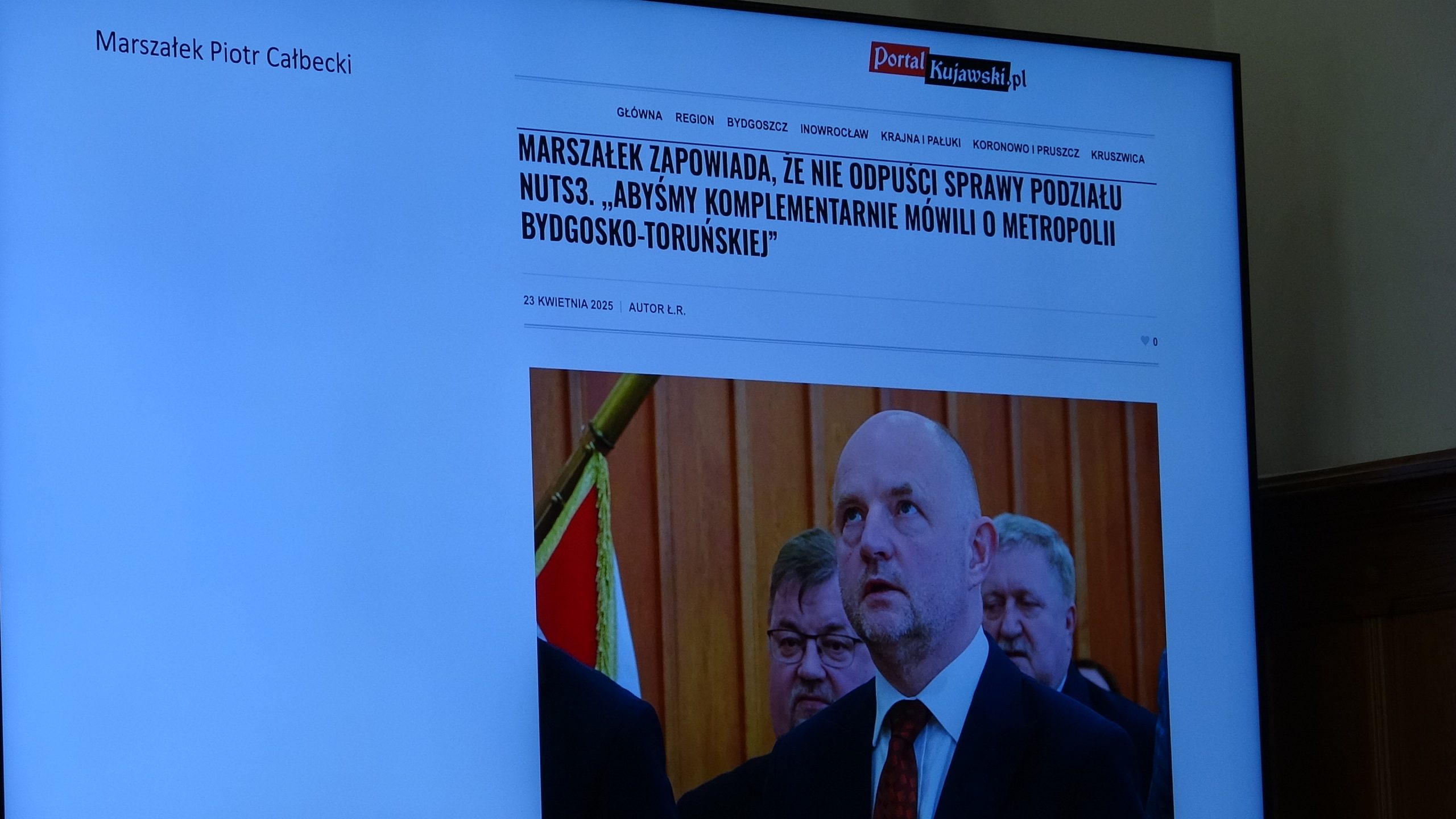 Przewodnicząca sejmiku Elżbieta Piniewska ułożyła tak porządek obrad, aby prezydent Bydgoszczy głos mógł zabrać po około pięciu godzinach od rozpoczęcia sesji, gdy przyjętym zwyczajem jest, aby śpieszący się do innych obowiązków goście zabierali głos raczej na początku. Formalnie prezydent Bydgoszczy wraz z marszałkiem Piotrem Całbeckim dyskutowali w temacie rewizji podziału statystycznego województwa na poziomie NUTS3. Na wniosek prezydenta Bydgoszczy, popartego przez wojewodę GUS rekomenduje Eurostatowi, aby podregion bydgosko-toruński (mamy w kujawsko-pomorskim jeszcze podregion: świecki, grudziądzki, inowrocławski i włocławski) podzielić na bydgoski i toruński. Marszałek Piotr Całbecki oprotestowuje ten kierunek działania – My mamy własne stanowisko. Myślę, że ono się nie zmieni, a ostatecznie decyzję podejmie Eurostat, czy Parlament Europejski. Sądzę, że mieliśmy swoje argumenty i dla zrównoważonego rozwoju całego województwa taka statystyka jest lepszą.