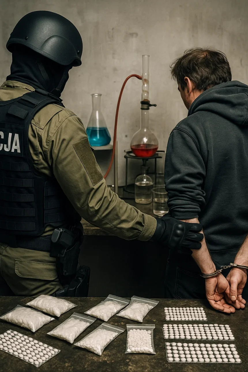 Podjęte przez funkcjonariuszy 5 czerwca 2025r. działania doprowadziły do jego likwidacji i zatrzymania 40-letniego Wiktora G. Na miejscu ujawniono kuwety wypełnione cieczą oraz sprzęt służący do produkcji substancji o nazwie 3-CMC (reaktory stożkowe, lodówki przemysłowe, odczynniki chemiczne, maty grzewcze, maski ochronne) – informuje Prokuratura Okręgowa w Bydgoszczy – Tego samego dnia funkcjonariusze zatrzymali współpracującego z Wiktorem G. przy produkcji i dystrybucji narkotyków 34 -letniego Bartosza M., który w nowo wybudowanym domu na terenie gminy Rojewo posiadał podobne laboratorium. Na miejscu ujawniono pojemniki z cieczą oraz kuwety ze śladami białego kryształu, a także około półtora kilograma gotowego narkotyku.