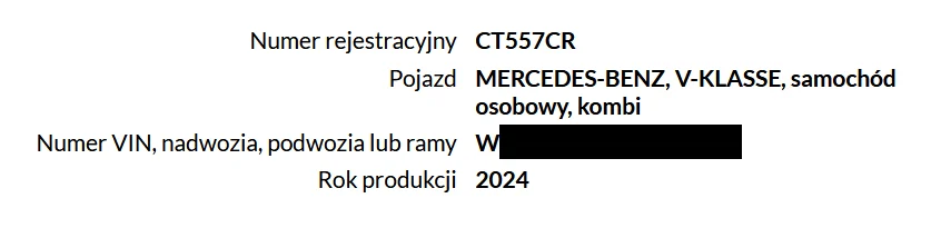 Wypis o samochodzie z bazy CEPIK