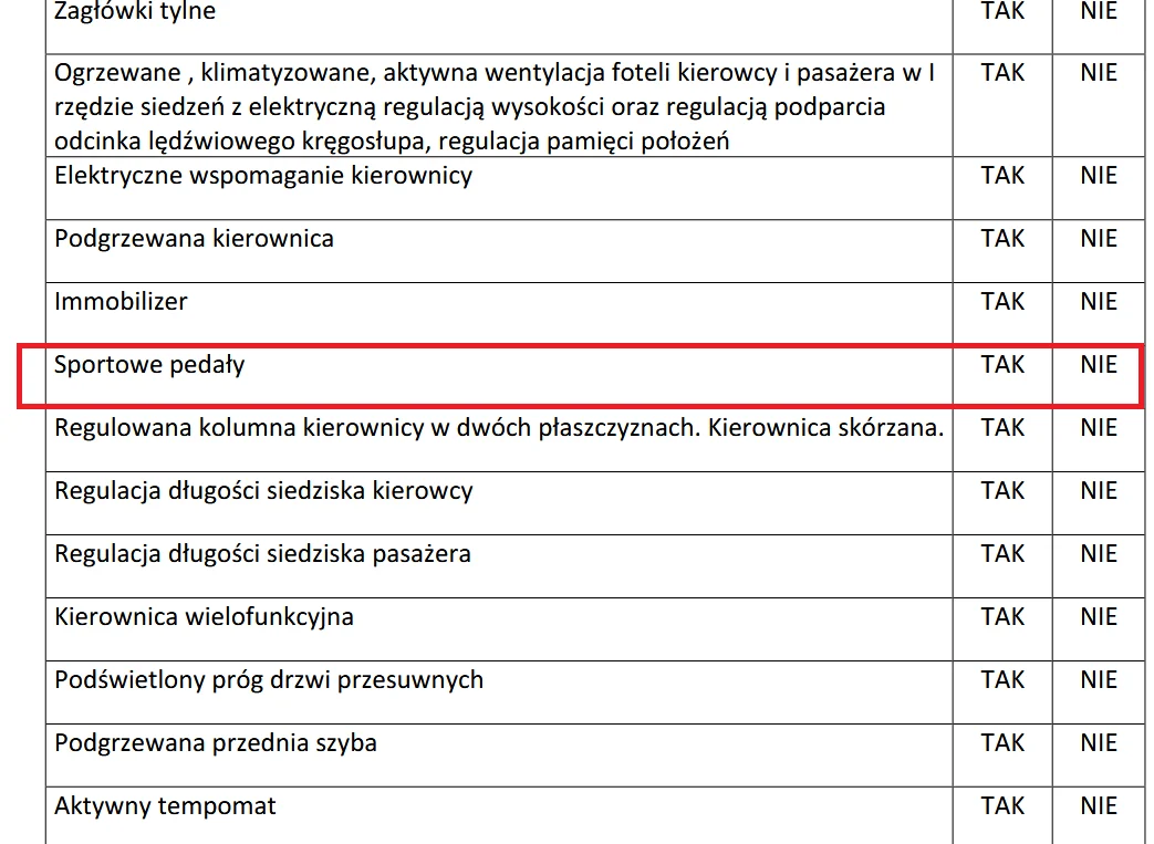 Sportowe pedały mogą być odbierane jako ,,brednie”, ale wymyślił je Urząd Marszałkowski w przetargu z 2024 roku na najem do 2028 roku. ,,Sportowe pedały” były wskazane jako warunek konieczny, bez spełnienia którego oferta musiałaby być odrzucona z powodów formalnych.