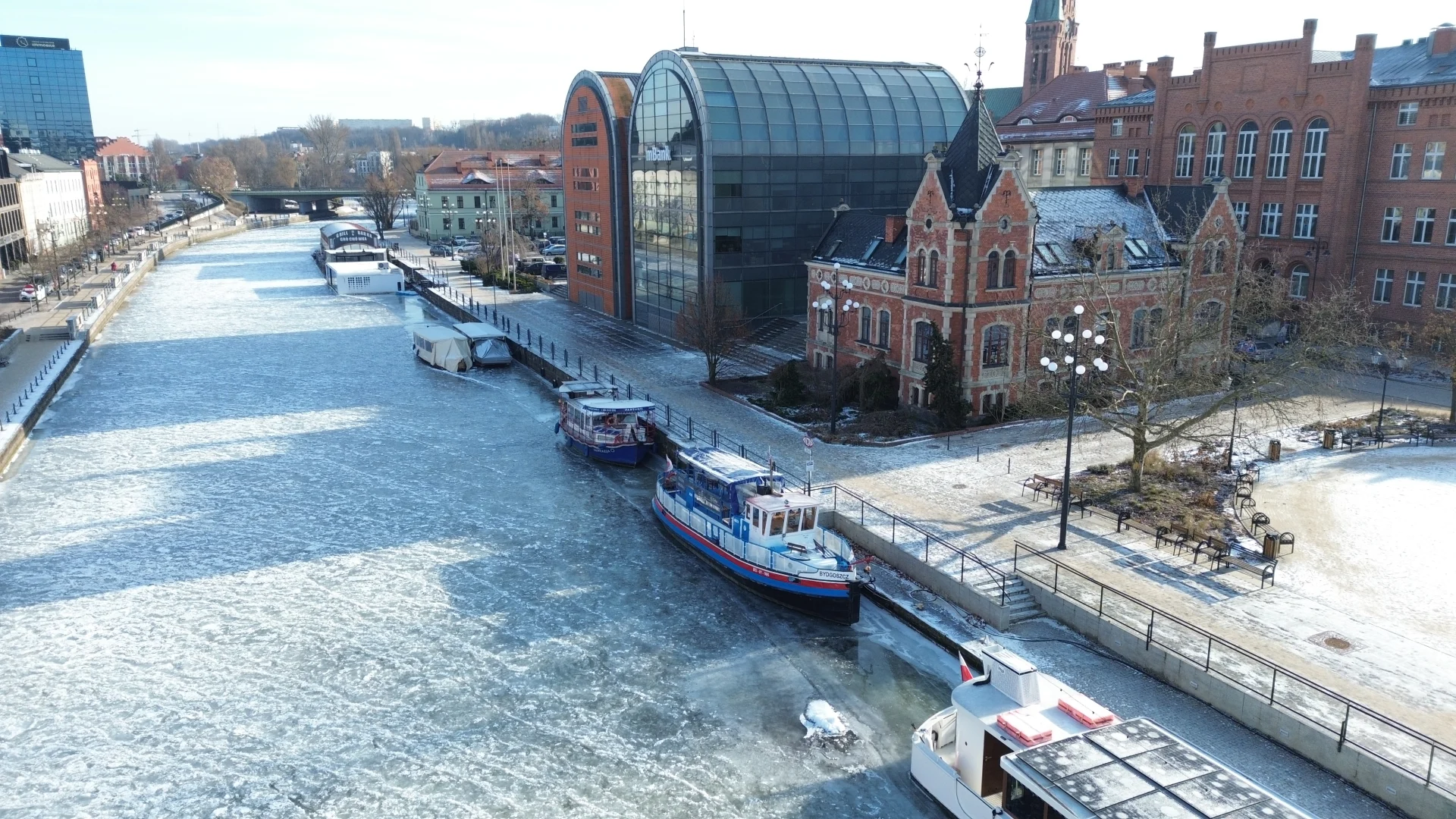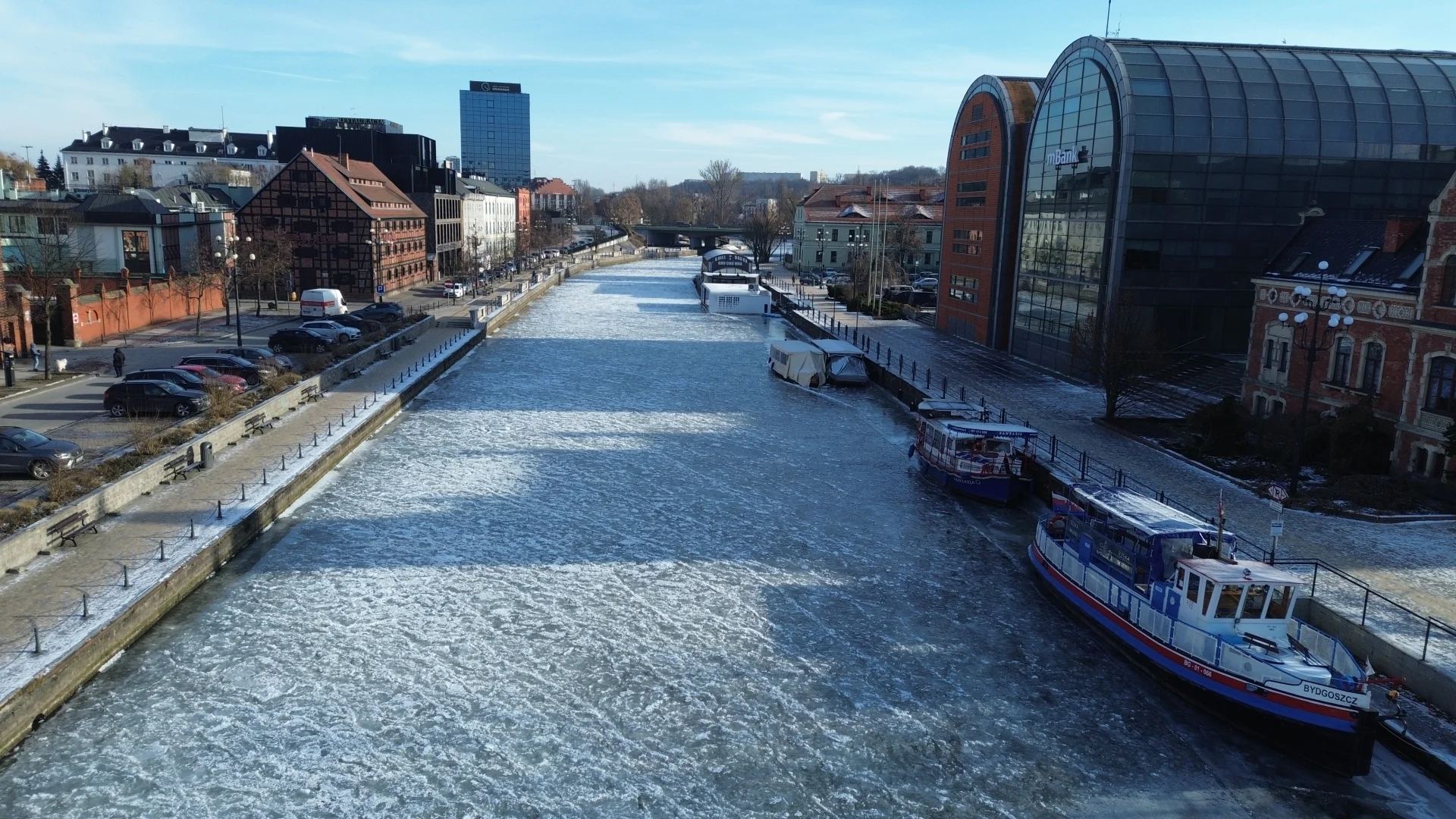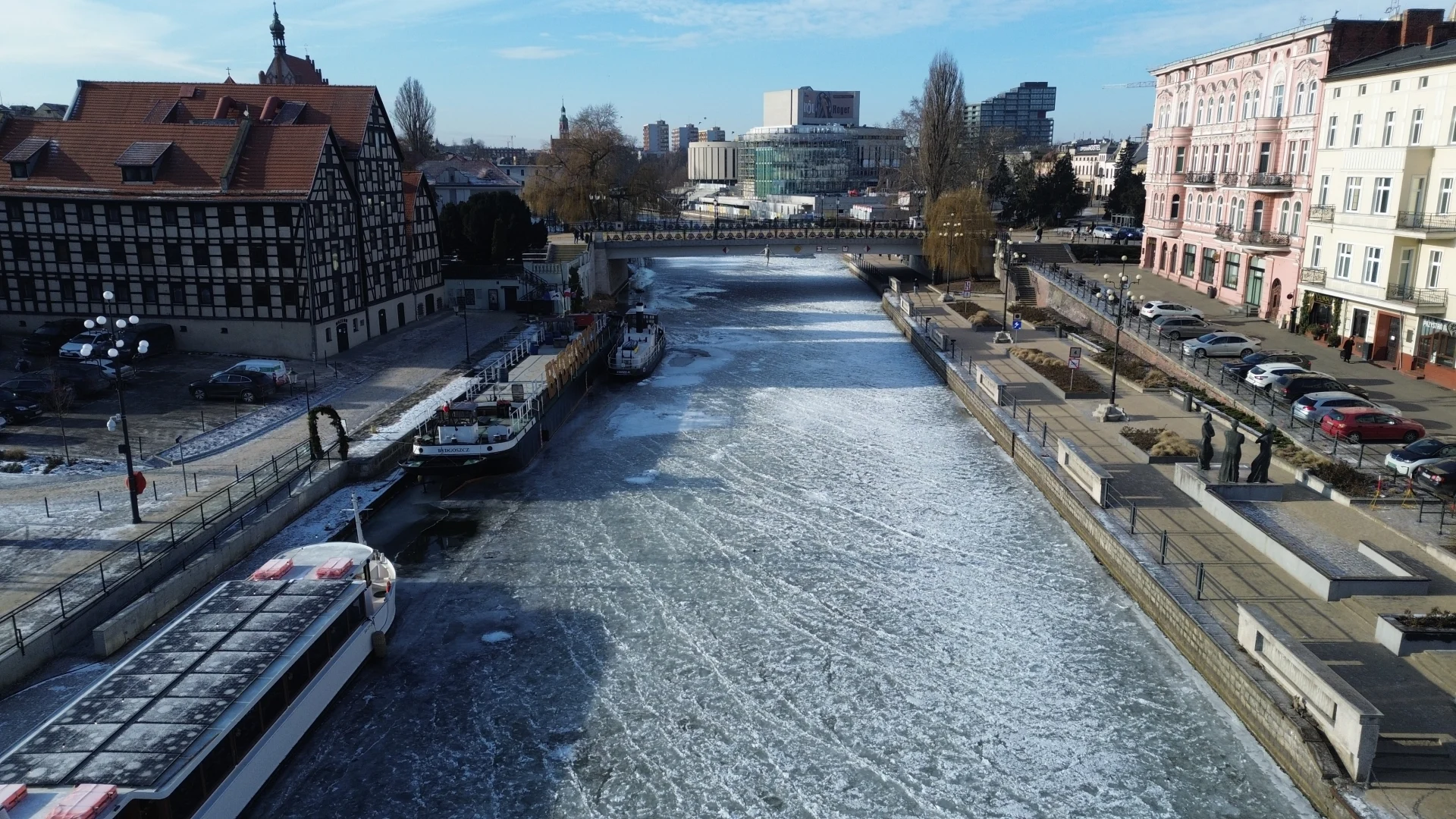 Utrzymujące się od kilku dni wysokie mrozy sprawiły, że zamarzła również Brda na odcinku w centrum miasta. Pokrywa lodowa uwięziła zacumowany do brzegu rząd jednostek pływających. Wygląda to jednak pięknie – dla tych, którzy nie chcą w mrozie udawać się na Most Staromiejski przygotowaliśmy relacje.