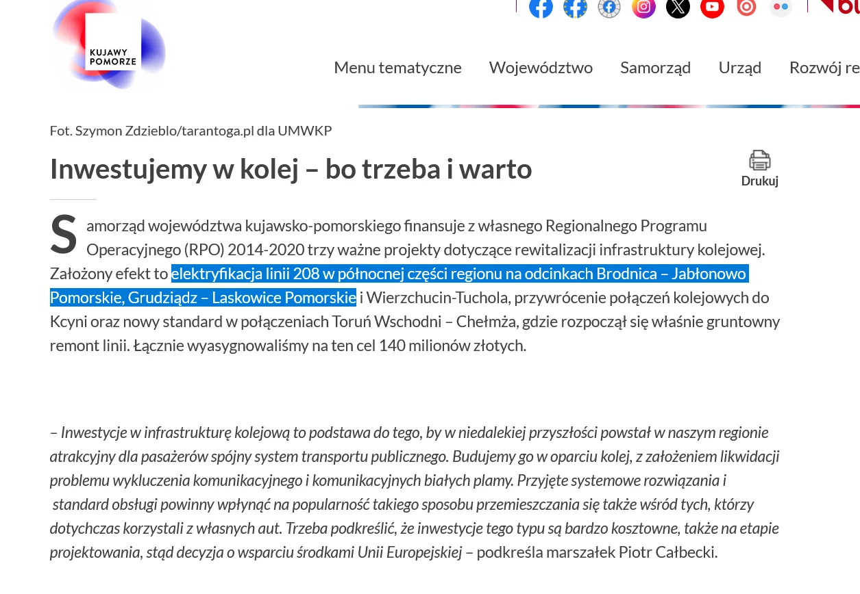 O skomunikowanie Bydgoszczy z Koronowem i dalszy remont z linii z Koronowa do Tucholi upominał się przed tygodniem radny Marek Gralik, z kolei radny Michał Czepek z koalicji nie krył zdziwienia nie ujęciem projektów elektryfikacyjnych dla Grudziądza. W szczególności był zaskoczony brakiem odcinka Laskowice Pomorskie – Grudziądz, bo jest to stosunkowo krótki odcinek (ok. 22 km), który pozwoliłby obsługiwać trasę Bydgoszcz – Grudziądz pociągami elektrycznymi, co pozwoliłoby zwolnić z tej trasy tabor spalinowy, którego mamy szczególny deficyt. Radny Czepek zaliczany jest to najbardziej oddanych zwolenników marszałka, zatem to niezadowolenie pokazuje, że nawet w koalicji nie ma wielkiego entuzjazmu.