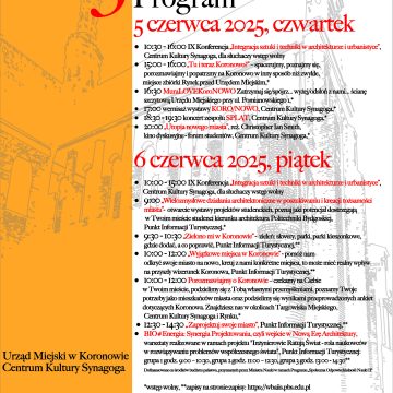 IX Konferencją pt. ,,Integracja sztuki i techniki w architekturze i urbanistyce” rozpocznie się w czwartek 3 Festiwal Architektoniczny współorganizowany przez Politechnikę Bydgoską i Gminę Koronowo. W ramach festiwalu obok wspomnianej konferencji przewidziano wiele wydarzeń towarzyszących, w tym spacery ze zwiedzaniem, a nawet jest akcent muzyczny.